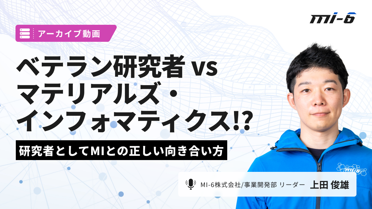 本動画は、2024年4月24日に開催されたセミナー「ベテラン研究者 vs マテリアルズ・インフォマティクス!?~ 研究者としてMIとの正しい向き合い方」の録画動画となります。