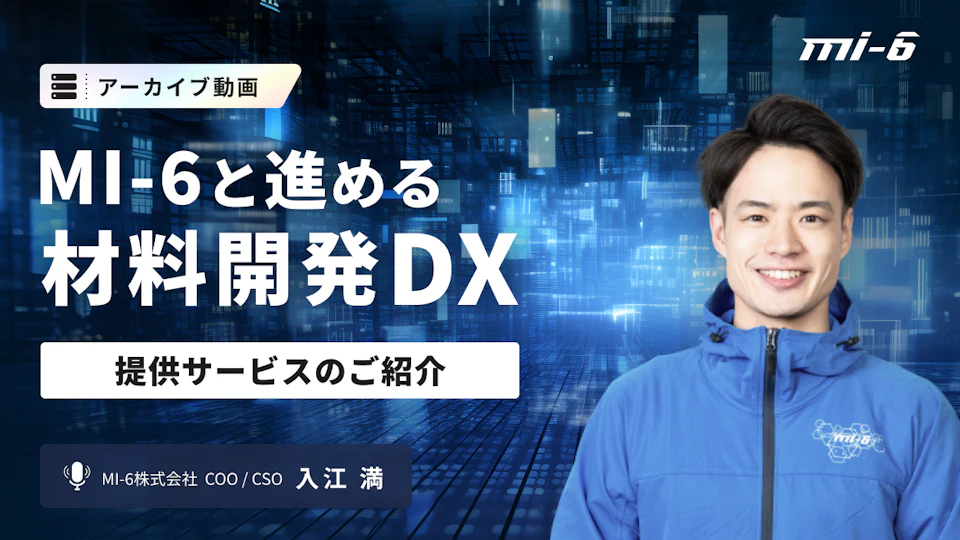 本動画は、2024年10月9日に開催されたセミナー「MI-6と進める材料開発DX:提供サービスのご紹介」の録画動画となります。