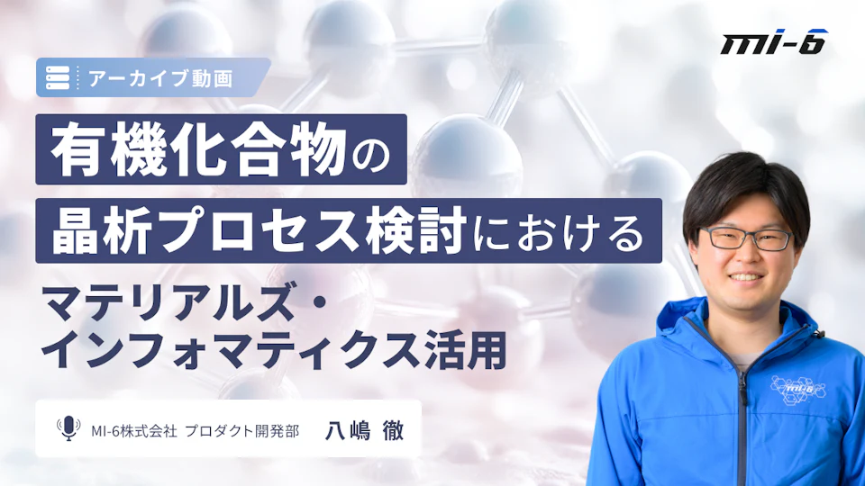 本動画は、2025年4月2日に開催されたセミナー「有機化合物の晶析プロセス検討におけるマテリアルズ・インフォマティクス活用」の録画動画となります。