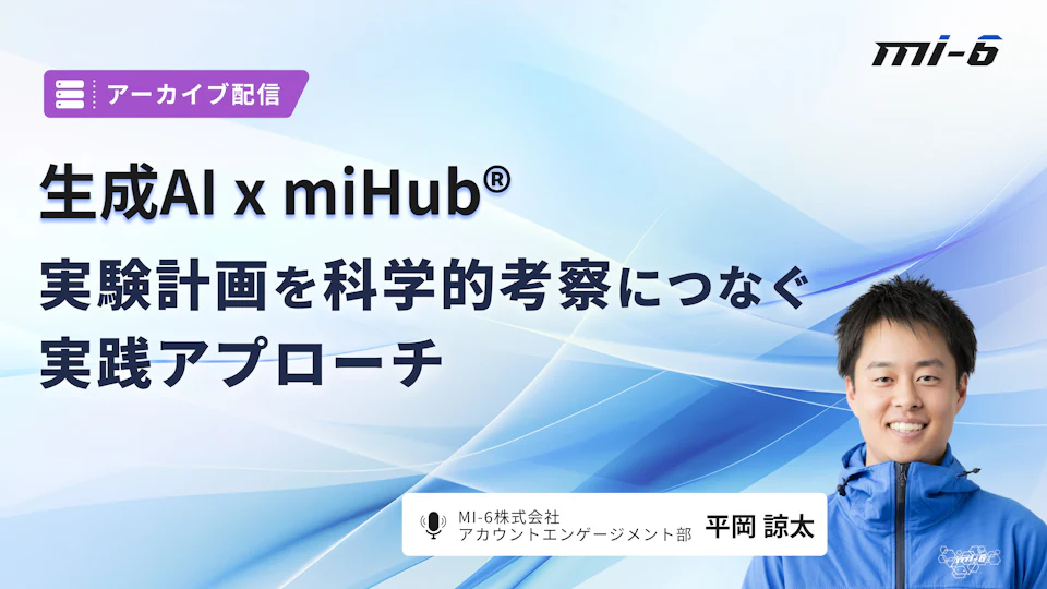 本動画は、2026年3月4日に開催されたセミナー「生成AI×miHub®: 実験計画を科学的考察につなぐ実践アプローチ」の録画動画となります。