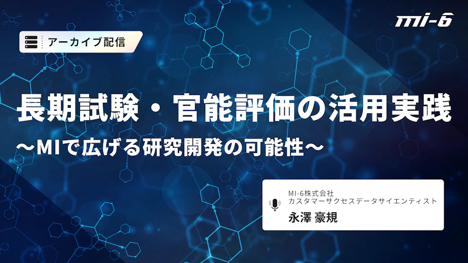 本ウェビナーでは、MI(マテリアルズ・インフォマティクス)を活用し、長期試験や官能評価データを継続的に蓄積・構造化しながら、開発判断に活かしていくアプローチをご紹介します。物性値のように扱いやすいデータだけでなく、ばらつきや主観を含む評価データをどのように整理し、活用可能な形へと変換していくのか。実務で無理なく始められる導入ステップと、現場に定着させるための進め方を、具体的な視点で解説します。