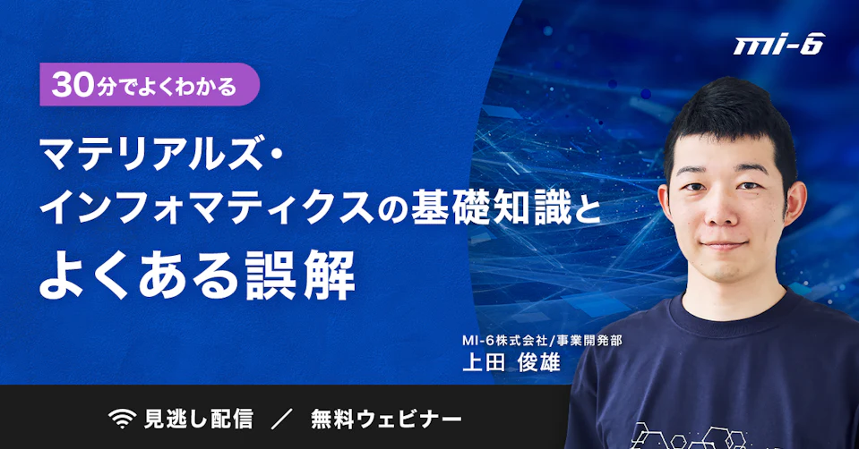 本セミナーでは、まずはマテリアルズ・インフォマティクスの基礎知識としてDXの文脈でMIがどのように位置づけられるのかについて触れさせていただきます。その後、MIの定義や概念について理解を深めながら、MIが注目されている背景についてご紹介いたします。最後に、MIへの取り組みの初期フェーズでよくある誤解について、数百社とお話させていただく中で見えてきた共通点をお話させていただきます。