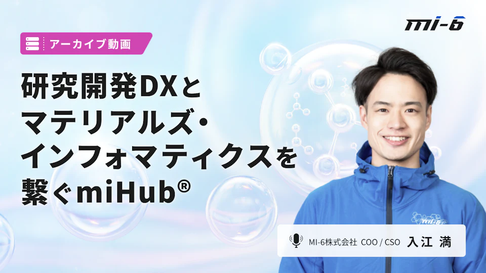 本動画は、2024年2月7日に開催されたセミナー「研究開発DXとマテリアルズ・インフォマティクスを繋ぐmiHub®」の録画動画となります。