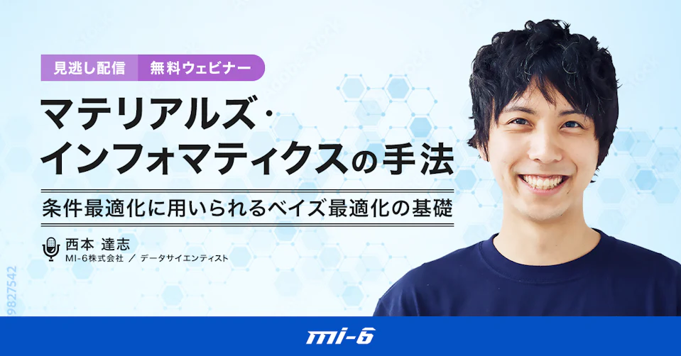 本セミナーは、マテリアルズ・インフォマティクス(MI)の基礎として「条件最適化に用いられるベイズ最適化」に焦点を当てます。
