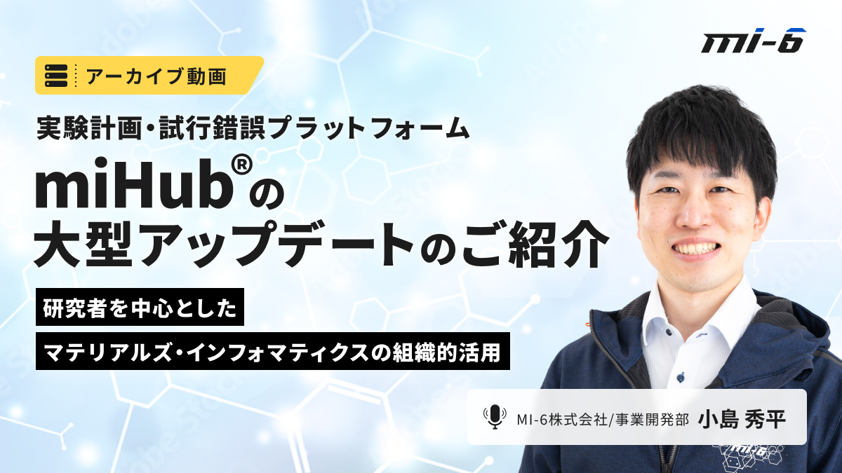 本動画は、2024年1月31日に開催されたセミナー「実験計画・試行錯誤プラットフォームmiHub®の大型アップデートのご紹介ー研究者を中心としたマテリアルズ・インフォマティクスの組織的活用ー」の録画動画となります。