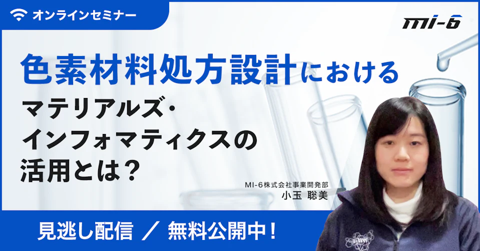 本動画は、2022年4月26日に開催されたセミナー「色素材料処方設計におけるマテリアルズ・インフォマティクスの活用とは?」の録画動画となります。