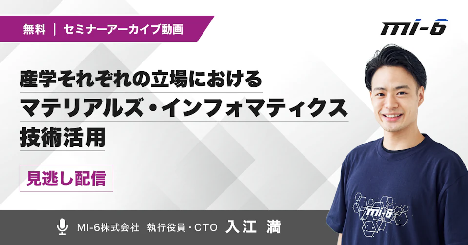 本動画は、2023年4月19日に開催されたセミナー「産学それぞれの立場におけるマテリアルズ・インフォマティクス技術活用」の録画動画となります。