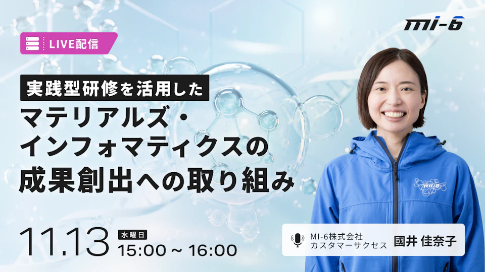研究開発領域におけるデジタル・トランスフォーメーション(DX)の1つとして、マテリアルズ・インフォマティクス(MI)に注目が集まっています。MIを導入することで、研究開発組織全体の成果向上が期待されています。新しい技術であるMIの導入効果を最大限引き出し、成果創出まで繋げるためには、研修などを通じたスキル習得に加え、MI実践との組み合わせが重要です。