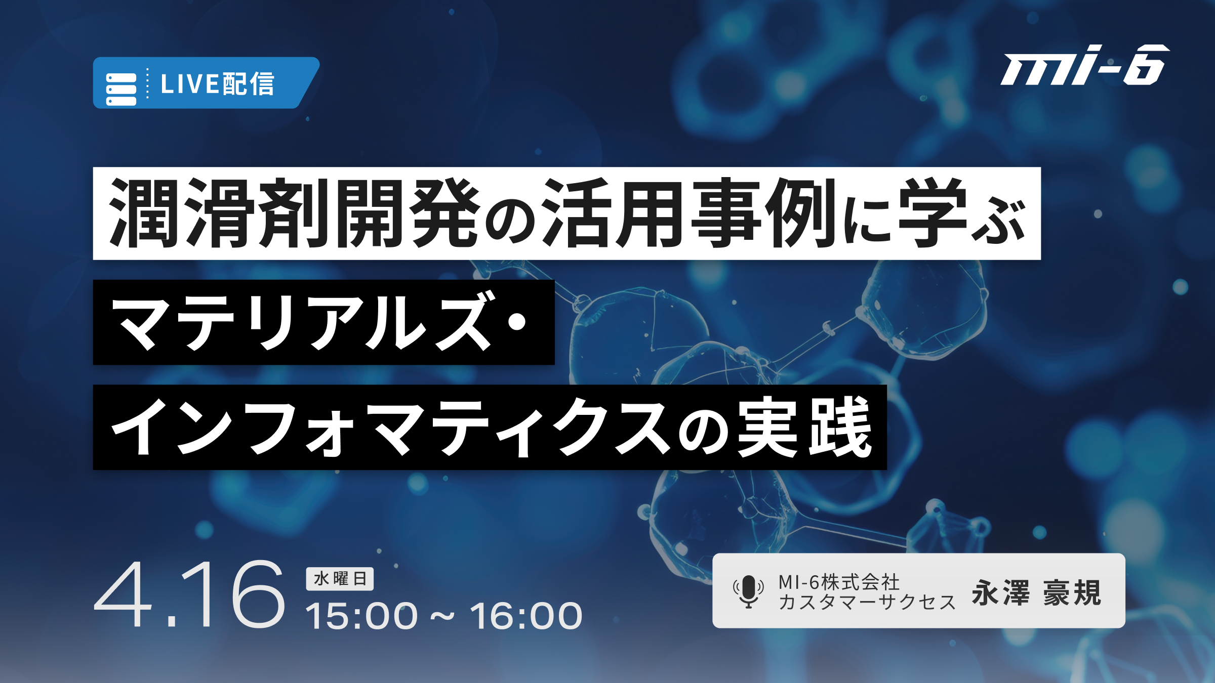 本セミナーでは、潤滑油開発テーマを例に、MIの活用事例をご紹介します。配合設計、特性予測、要因分析といった開発プロセスにおいて、MIがどのような場面で効果を発揮するのか、実践的な視点でお伝えします。潤滑剤開発に携わる方々のデータ活用に向けた第一歩として、ぜひご参加ください。