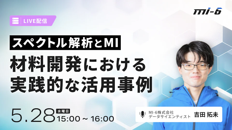本セミナーでは、スペクトルデータの有効活用に向けて、マテリアルズ・インフォマティクス(MI)を用いた解析アプローチをご紹介します。