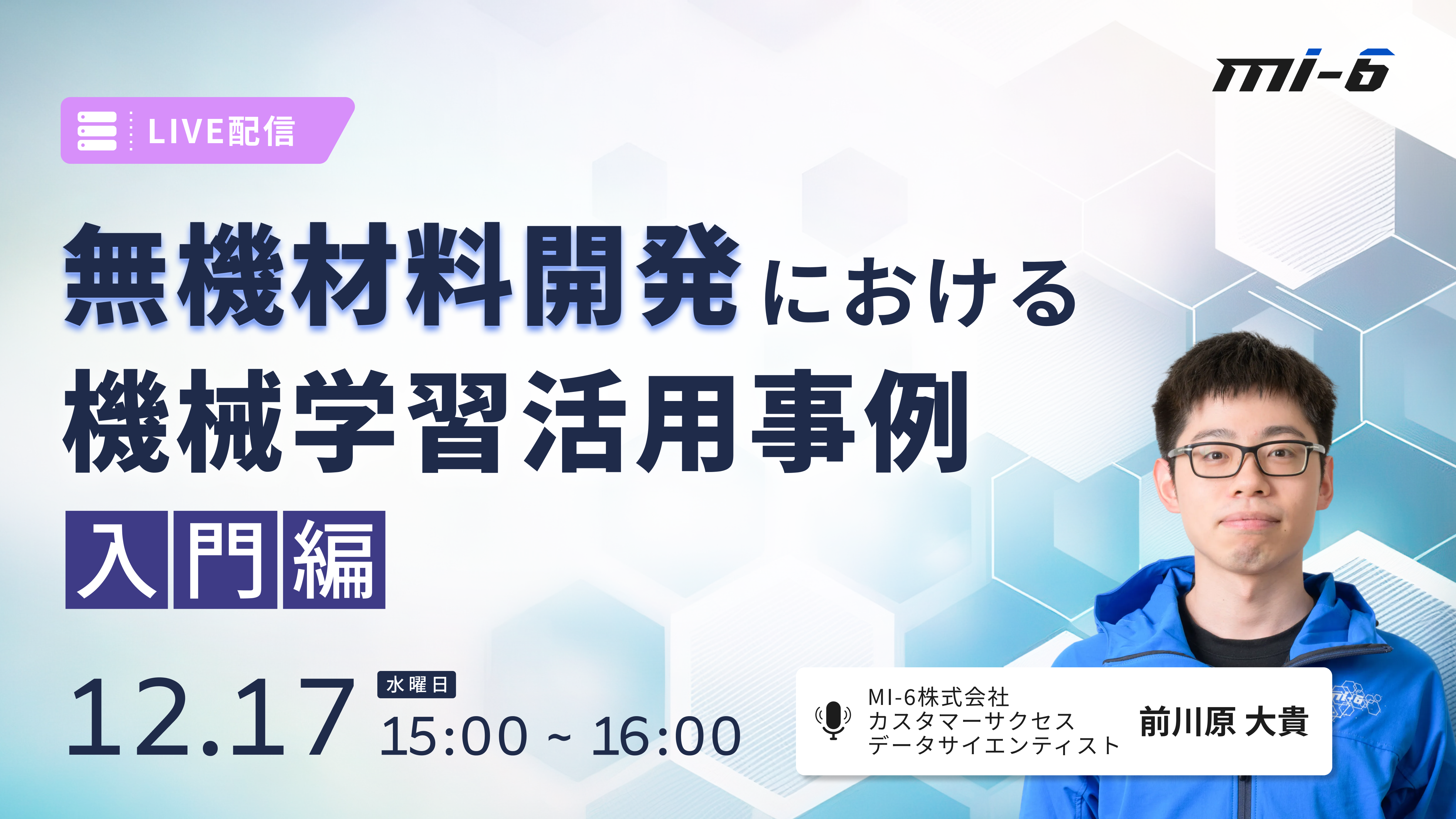 「合金皮膜」「低融点ガラス」「半導体」の3つの事例を通して、ベイズ最適化や予測モデルの活用など、研究の効率化や要因分析に役立つアプローチを概観します。研究開発DXプラットフォーム「miHub®」のデモを交えながら、機械学習が開発者の試行錯誤をどのように支援できるかをお伝えします。