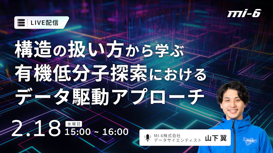 有機低分子材料の探索に課題を感じている方や、データ活用・MIに関心はあるものの具体的な進め方に悩んでいる方に向けた内容です。