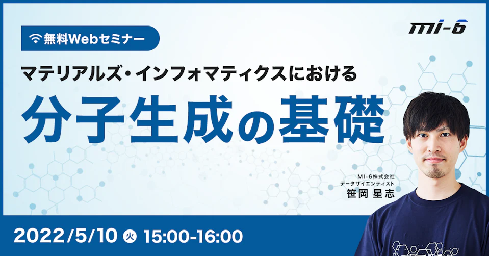 本セミナーでは、MI-6のデータサイエンティストより、MI専業企業として多くの企業のMI導入をご支援してきた立場から、各社向けにカスタマイズしたマテリアルズ・インフォマティクスを実施するハンズオンMIにて用いられる、分子生成に関する技術とその概要についてお話させていただきます。