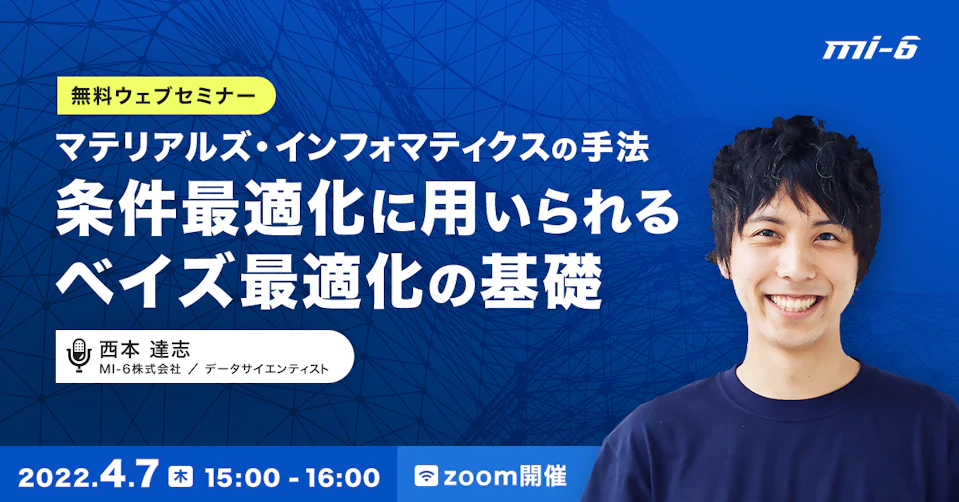 本セミナーでは、MI専業企業として多くの企業のMI導入をご支援してきた立場から、素材組成・プロセス条件の最適化に用いられる手法であるベイズ最適化の基礎をお伝えしつつ、導入における課題や、弊社で提供している条件最適化に特化したMIのSaaSであるmiHub®についてお話させていただきます。