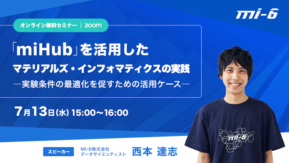 本セミナーでは、実験条件最適化に特化したマテリアルズ・インフォマティクスのSaaSであるmiHub®(エムアイハブ)の材料開発に特化した特徴的な機能とその活用事例についてお話させていただきます。