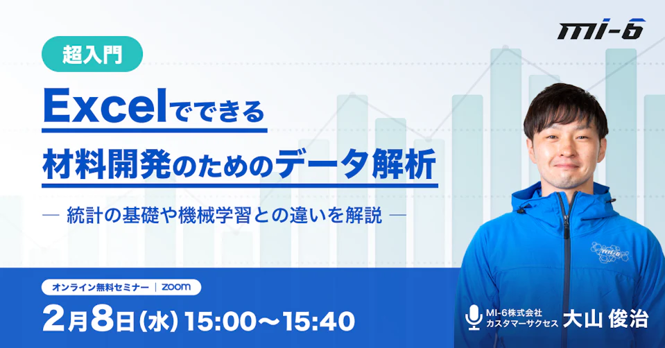 本セミナーでは、MI-6のカスタマーサクセスの大山より、データ整理でよく使われるExcelを使ってどのようなデータ解析ができるのか?を中心にご紹介し、基礎的な統計の内容にも触れながらお話させていただきます。