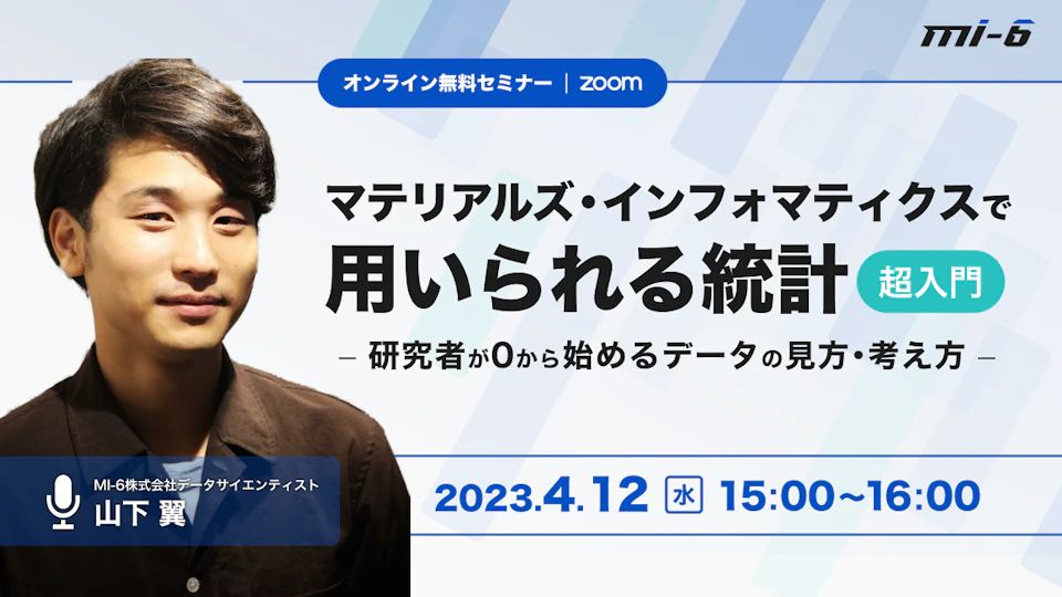 本セミナーでは、マテリアルズ・インフォマティクスを進めるデータサイエンティストより、要約統計量やデータの見方・考え方の基礎的内容についてお話させていただきます。
