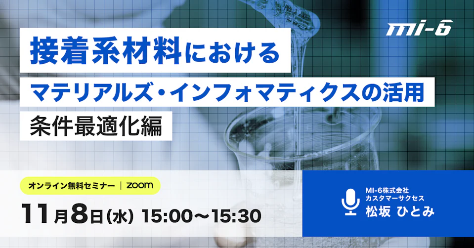 本セミナーでは、MI-6のカスタマーサクセスの松坂より、miHub®の活用実績からトレンドテーマの一つである接着系材料にフォーカスし、データ準備から活用事例についてお話させていただきます。