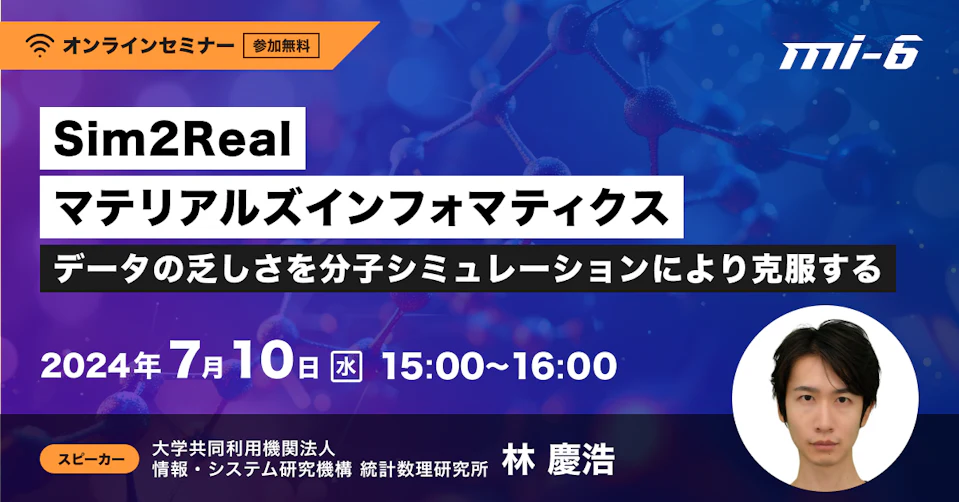 そこで今回は、弊社技術顧問の統計数理研究所 林 慶浩 先生より、このスモールデータ問題を克服すべく、少量の実験データを計算化学的手法により大量生産したシミュレーションデータで補う方法論であるsimulation-to-real(Sim2Real)について転移学習やマルチタスク学習を用いた手法やその利活用法をご紹介致します。